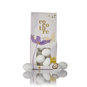 SmagOgGodt.dk fandt Cocoture æske med påskechokolade – 95-100g fra Cocoture til 51.00 DKK i kategorien Home > Påske hos Cocoture.dk. Hvide dragéæg med stracciatella fyld. Leveret i lilla Cocoture dragébox med blomster. 95-100g