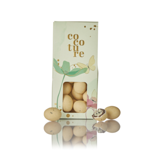 SmagOgGodt.dk fandt Cocoture æske med påskechokolade – 95-100g fra Cocoture til 51.00 DKK i kategorien Home > Påske hos Cocoture.dk. Brune dragéæg med stracciatella fyld. Leveret i grøn Cocoture dragébox med blomster. 95-100g