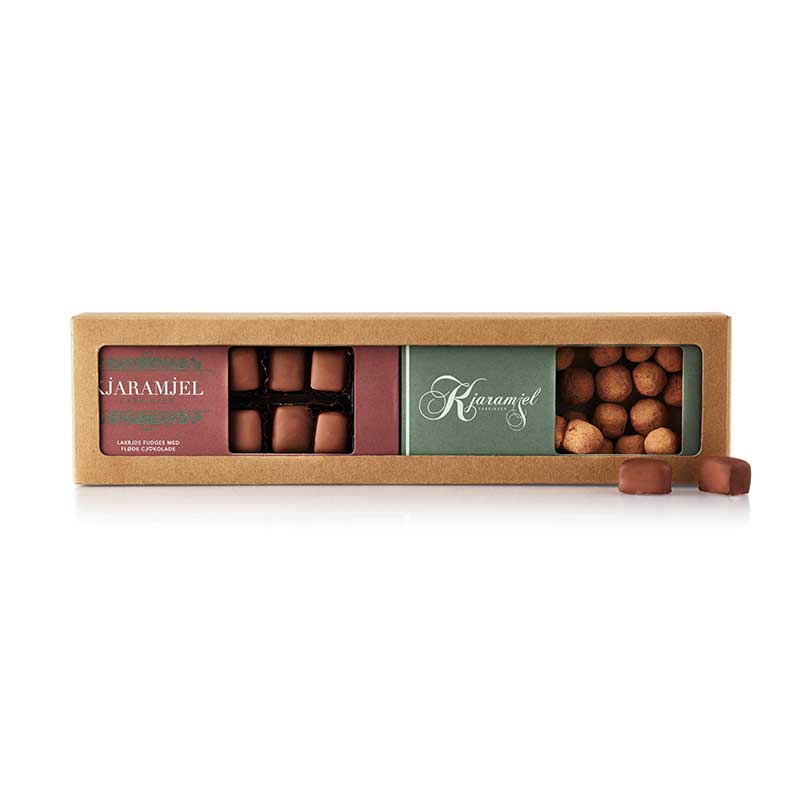 SmagOgGodt.dk fandt Duo Kjaramjel (overtrukket) – Lakrids fudge & karamelkugler m/ chokolade fra Kjaramjel Fabrjkken til 98.00 DKK i kategorien Home > Karamel hos Cocoture.dk. Lakrids fudge overtrukket med fløde chokolade og karamelkugler overtrukket med 28% flødechokolade og drysset med kakaopulver. Leveres i brun retro æske. 200g