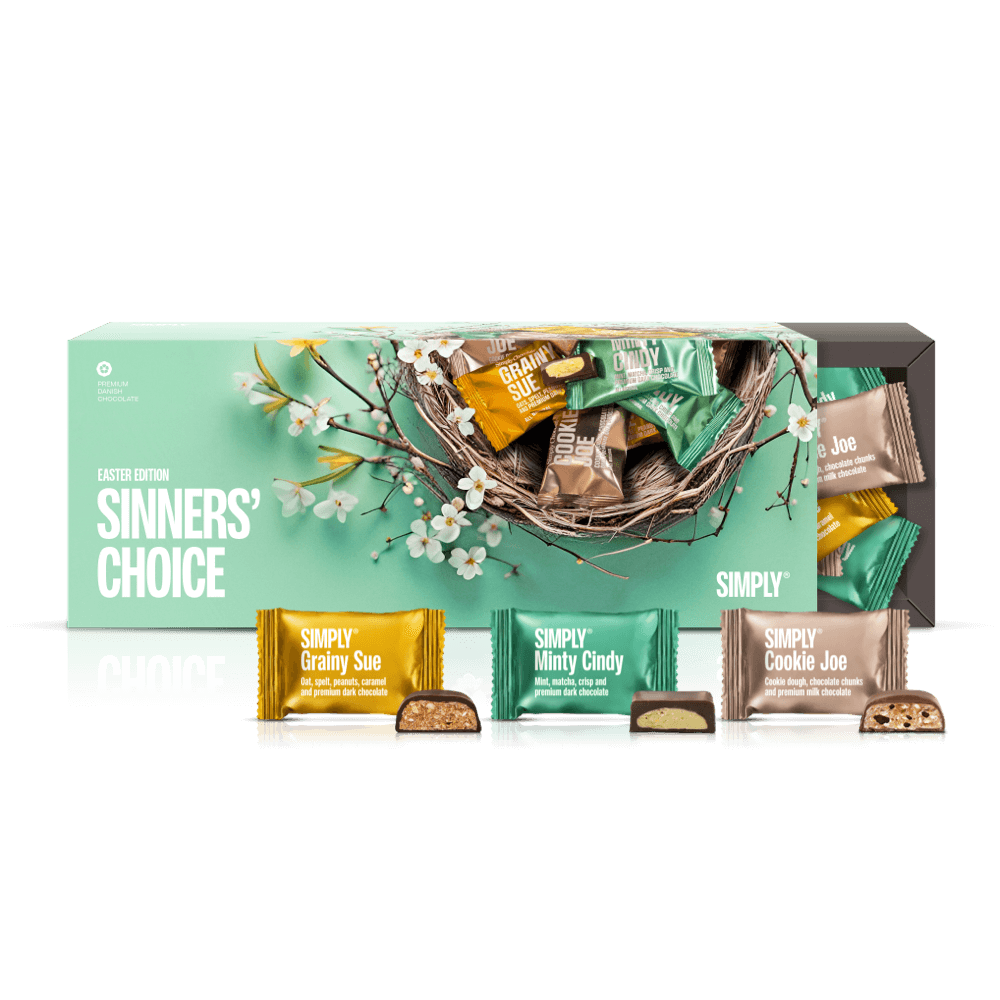 SmagOgGodt.dk fandt Sinners Choice | Gaveæske med 27 stk. Bites fra SIMPLY ® til 199.00 DKK i kategorien Påske hos Simply Chocolate. Påskens uimodståelige fristelse Sinner's Choice er den perfekte fristelse til påsken. Chokoladeæsken er fyldt med 27 Bites i tre syndigt lækre varianter: Grainy Sue, Minty Cindy og Cookie Joe perfekt til påskebordet eller som gave til en, du holder a